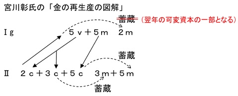 ここで宮川彰氏の金生産に関わる表式(「『 資本論』第2・3巻を読む」上p243)の誤りを指摘し、ykbdataの表式を示しましょう。