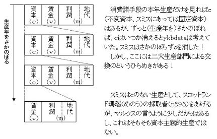 ここではスミスのドグマの基本について「諸国民の富」を引用し続け、批判し、マルクスの再生産論を準備します。