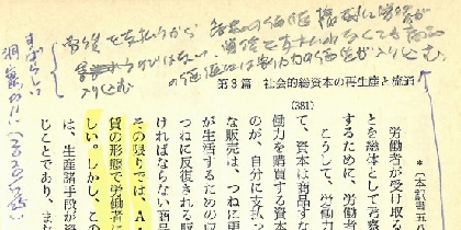 何と書き込まれているか。「労賃を支払うから商品の価値構成に労賃が入り込むのではない。労賃を支払わなくでも商品の価値には労働力の価値が入り込む。」と。ことの一言で、ここでマルクスの言わんとしたことが現わされています。「蒙昧遊戯」をものともせず、本質をとらえることのできたあの頃のykbdataの頭脳の働きは、もう期待しようがありません。