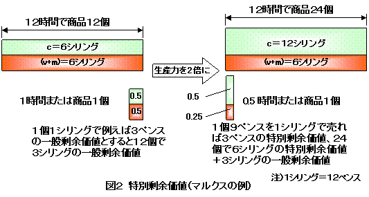 ではどのくらいの特別剰余価値が得られるか、マルクスの例(Bp561〜p562BP552〜P554)を図で表すと下図2のようになります。