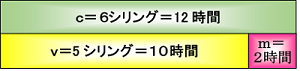 必要労働時間と剰余労働時間の比率は、以前は5対1だったがいまや5対3になります。「同じ結果は、次のようにしても得られる」と今度は不変資本c、可変資本v、剰余価値mを労働時間に換算します。すなわち