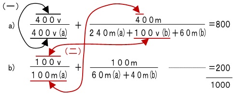 (一)T1000v(マルクスは1000Tvと表現しているが、T1000vの方が「部門Tの1000の可変資本」と順を追っているので分かりやすい。あるいはTv1000、すなわち部門Tの可変資本1000としても良いか)は部門T内で労働力(生産資本)に転化する。この転換は目立つ消費財商品市場には直接現れない、Tの労働者が得た賃金をもって消費財商品市場に現れても、この転換は何ら関心がもたれない。