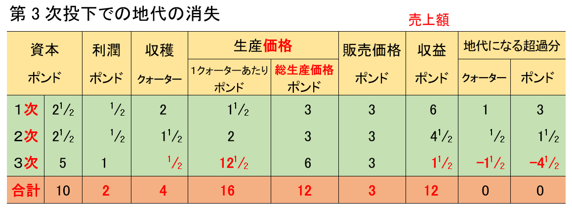 第2次の2.5ポンド投下(3ポンドの「個別的生産価格」)で11/2クォーター