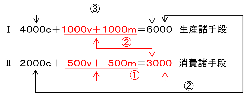 総収益(総生産物価値)=不変資本および可変資本(c+v)+剰余価値(m)