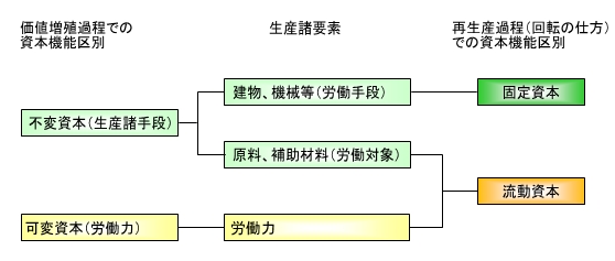 具体的なイメージとしては、例えばAは高級鮮魚加工業で、大量の高級鮮魚がベルトコンベアで流れてきて、これを少数の労働者が手作業で素早く加工する。高級鮮魚だから比較的高価で流動的不変資本(原材料費)が大きいが、回転が速い。Bは加工食品工場で加熱装置や攪拌(かくはん=均一に混ぜ合わせる)装置など固定資本が大きく、安い輸入食品原料を使っていて流動的不変資本が小さいが、品質検査部門の人件費(可変資本=流動資本)が大きく、回転が遅い。