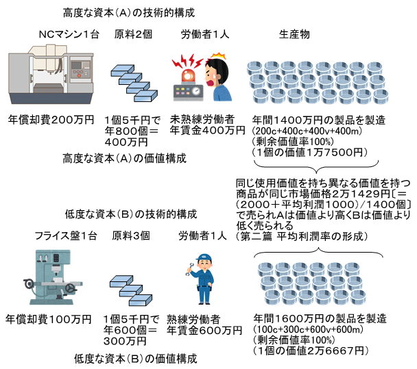 #083_1:資本の有機的構成の違いのイメージ